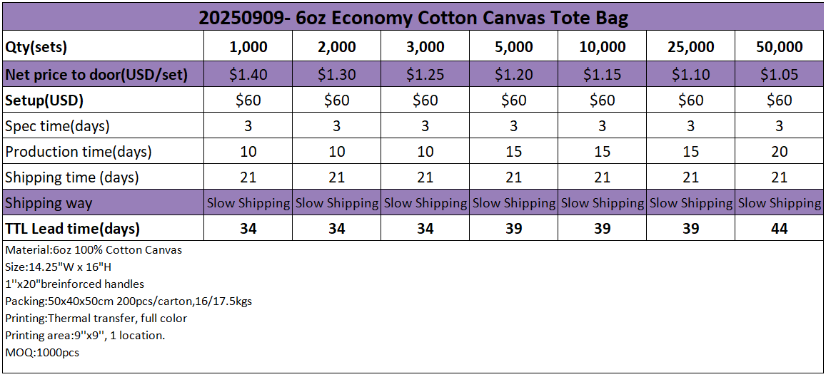 6oz Economy Cotton Canvas Tote Bag-20250909