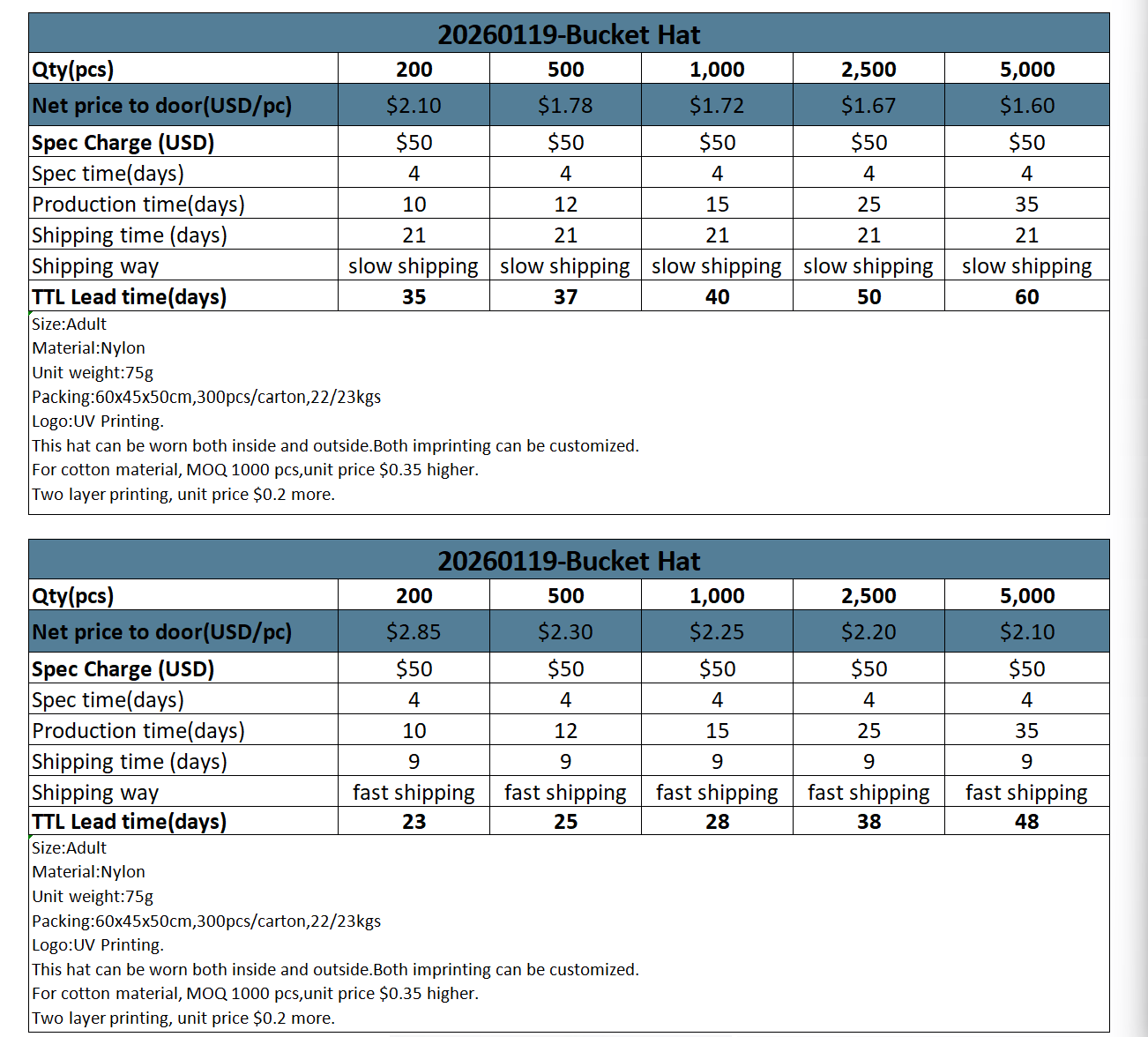 (USD/pc)