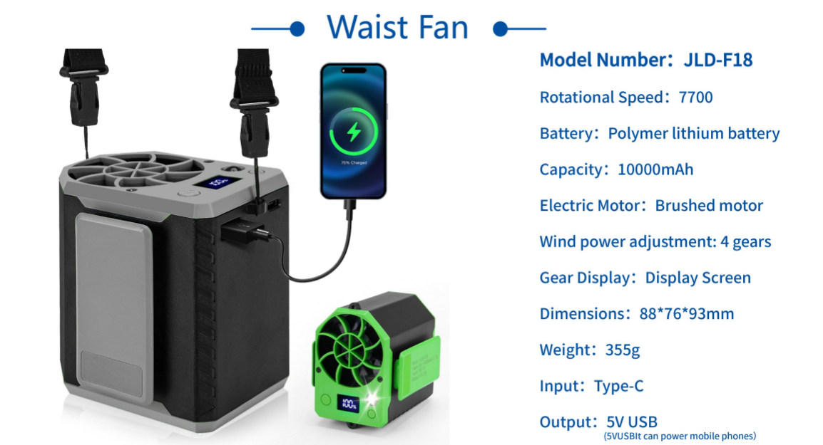 Material:PC+Lithium Battery Colors:Black/Orange/Green Battery:10000mAh Size:3.6''Lx3.5''Wx3''D Unit weight:400g Use time: 10-15 hours.4 gears,fast charging, Type-C,USB port,flashlight,power bank function. Packing:50x50x550px,50pcs/carton, 17kgs/19.5kgs Price includes 1 color 1 location logo imprinted.